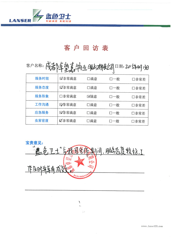 通過合作,對四害的消殺控制的很好,符合項目品質要求!